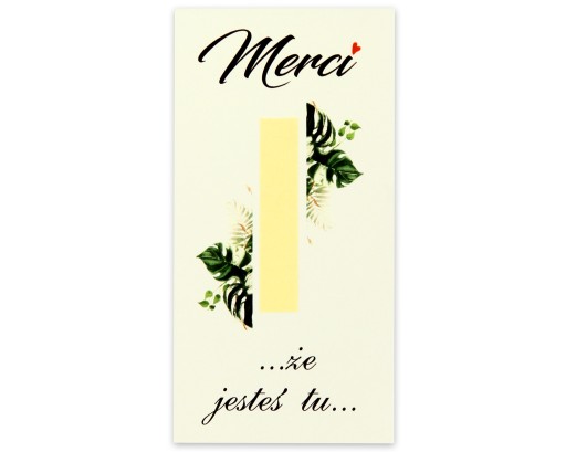Wzór z motywem roślinnym jest uniwersalny dzięki czemu podziękowania można wykorzystać na każdą okazję: ślub, chrzest, komunię, urodziny itp.