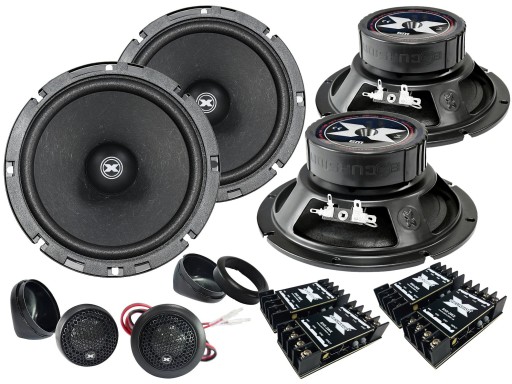 Samochodowy 2-drożny zestaw głośników odseparowanych marki Excursion z serii SHX (Street High Power eXcursion) zawierający 4 mid-woofery o średnicy 165 mm.
