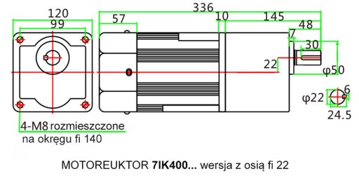 - oś wyjściowa o średnicy fi 22mm