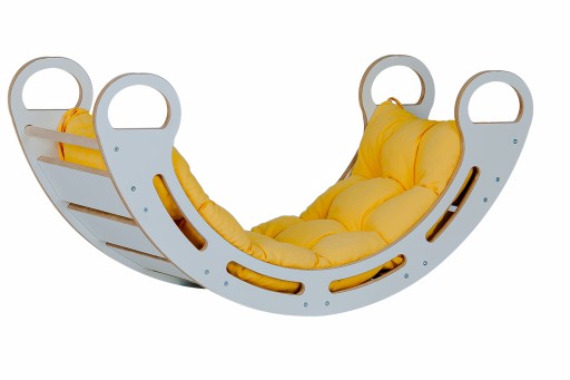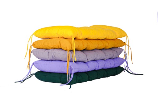Poduszki wykonane sa z bardzo wytrzymałej tkaniny ,dzięki czemu nadaja sie do bujaków. Poduszka została uszyta z materiału o kolorze żółtym, posiadają dodatkowo troczki dzięki czemu mozna je przywiązać do wałka bądz uchwytu co zapewnia wieksze bezpieczeństwo dziecka podczas użytkowania