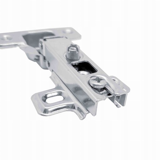 Zawias mechaniczny do drzwi nakładanych z prowadnikiem. Zawias ten jest uznany jako najbardziej popularny zawias na rynku w branży meblowej. Dzięki swojej budowie gwarantuje wysoką wytrzymałość.