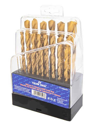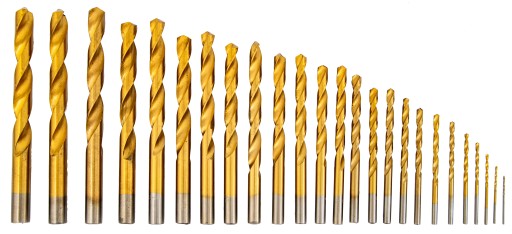 - Wysokiej jakości zestaw wierteł do metalu, wykonany ze stali szybkotnącej HSS z powłoką tytanową