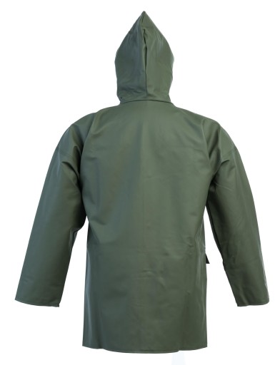 Przeciwdeszczowa kurtka wędkarska z kapturem firmy Jaxon. Wykonana z materiału Plavitex, który jest w 100% nieprzemakalny. Kurtka zapinana zatrzaskowymi guzikami, wyposażona w dwie pojemne kieszenie. Integralną częścią kurtki jest kaptur posiadający sznurkowy ściągacz. Kurtka bez ocieplanej podszewki polecana na cieplejsze deszczowe dni w okresie wiosenno-letnim. Dzięki niewielkim rozmiarom po złożeniu możemy ją zabierać na każdy wypad wędkarski. Kurtka dostępna w kolorze zielonym. Dostępne rozmiary: S, M, L, XL, XXL, XXXL. Numer katalogowy producenta: UP-APL