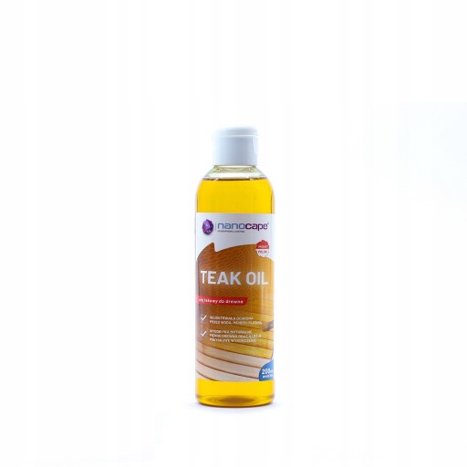 NANOCAPE® TEAK OIL - Naturalny impregnat do drewna na bazie mieszaniny specjalnych olejów roślinnych oraz rozcieńczalników chroniący przed wilgocią, brudem i drobnymi mikroorganizmami zapewniając przy tym całkowitą paro-przepuszczalność. Naniesiony na drewnianą powierzchnię olej tekowy chroni i nasyca ją, dając jednocześnie jedwabny połysk na wszystkich jego rodzajach. Olej chroni nielakierowane drewno, nie zmieniając wizualnie powierzchni drewna i zachowuje jego parametry użytkowe.