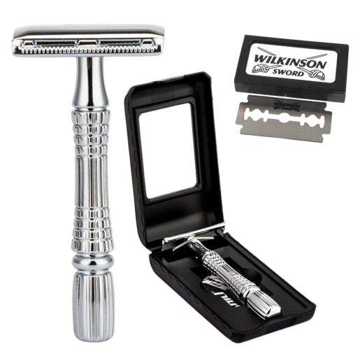 TRADYCYJNA MASZYNKA DO GOLENIA NA ŻYLETKI ETUI + ŻYLETKA WILKINSON