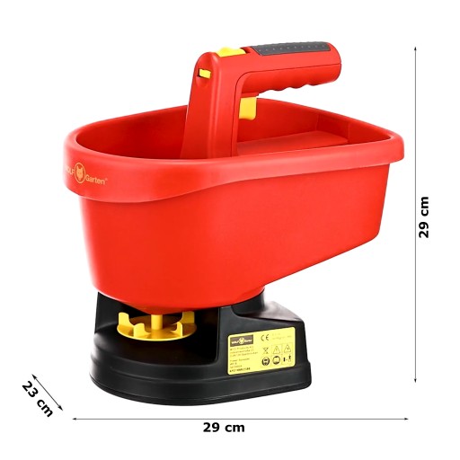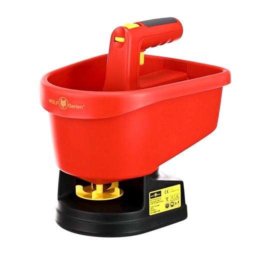 Ręczny rozsiewacz WE-B marki WOLF-Garten umożliwia łatwe, szybkie i równomierne rozprowadzenie nasion czy nawozu. Zasilane czterema bateriami AA (dołączone w zestawie). Narzędzie wyposażone zostało w 3 litrowy zbiornik do rozrzucania materiału. Urządzenie pozwala na rozrzucanie nasion na szerokości od 0,5 do 2,5 metra. Prezentowany siewnik ogrodowy na baterie stworzony został z wysokiej jakości polipropylenu, dzięki czemu jest odporny na działanie rozrzucanych substancji.