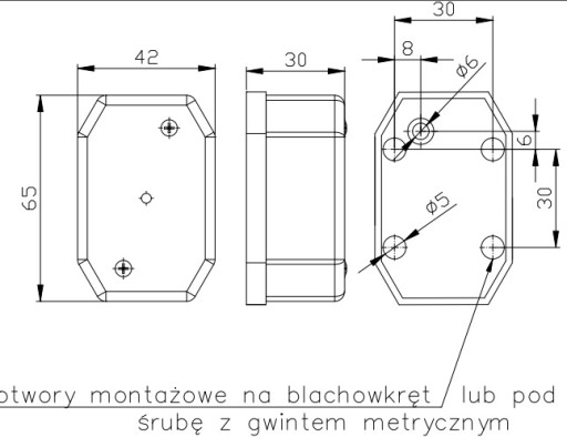 - ROZSTAW ŚRUB MOCUJĄCYCH M6 : 30mm