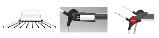 Dzięki zintegrowanej blokadzie skrzydeł i elementom stabilizującym na stelażu suszarka jest zabezpieczona przed przypadkowym złożeniem lub otwarciem się.