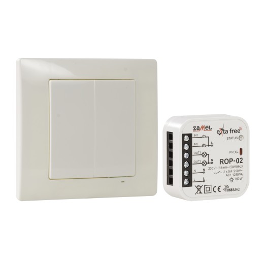 Radiowe odbiorniki dopuszkowe znajdują zastosowanie zarówno jako elementy do montażu w puszkach instalacyjnych pod- i natynkowych, jak i jako urządzenia wykonawcze zabudowywane bezpośrednio w obudowach opraw oświetleniowych i innych odbiorników. ROP-02 umożliwia pracę w 5 różnych trybach (załączenie, wyłączenie, tryb monostabilny, bistabilny, czasowy).