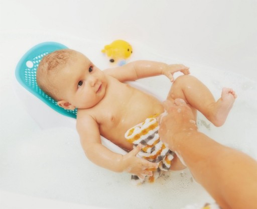 Produkt wyposażono w mocne przyssawki oraz antypoślizgową gumę na dolnej krawędzi, można więc stosować go bezpośrednio w wannie. Jest stabilny i nie przesuwa się. Zapewnia to wygodę podczas kąpania dziecka oraz wpływa na bezpieczeństwo