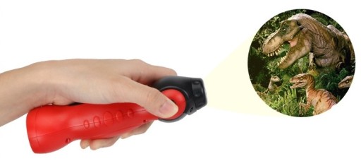 Poręczna latarka, która jest również projektorem slajdów przyda się wszystkim poszukiwaczom przygód. Wystarczy zgasić światło, włączyć latarkę i skierować ją na sufit lub ścianę. Projektor posiada regulację ostrości wyświetlanego obrazu, wystarczy tylko przekręcić pokrętło na latarce, a głowica projektora obraca się o 90 stopni. Slajdy przedstawiają 25 różnych dinozaurów.
