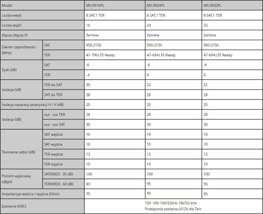 W naszej ofercie znalazły sie także multiswitche końcowe oraz wzmacniacze