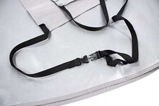 Mata wyposażona jest w pasek z klipsem, który zatrzaskujemy we wnętrzu samochodu, dzięki czemu osłona trzyma się na szybie pewnie i nie ma możliwości zsunięcia czy zrzucenia przez wiatr!