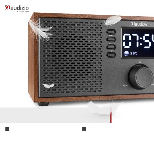 Dzięki Audizio Rimini możesz cieszyć się ulubioną muzyką tak, jak chcesz. Podłącz Rimini bezprzewodowo do domowej sieci Wi-Fi i uzyskaj dostęp do ponad 26 000 stacji radiowych z całego świata. Przesyłaj muzykę do Rimini przez Bluetooth i korzystaj ze Spotify, YouTube lub dowolnej usługi przesyłania strumieniowego. Użyj Spotify Connect, aby uzyskać łatwą obsługę i lepszą jakość dźwięku. Dwa głośniki o łącznej mocy 50W zapewniają wysublimowaną reprodukcję dźwięku stereo, dzięki czemu możesz się cieszyć muzyką.