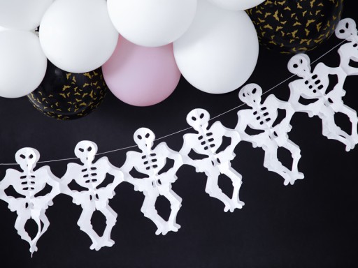 Girlanda bibułowa Szkielety w kolorze białym, długość ok. 3 m.