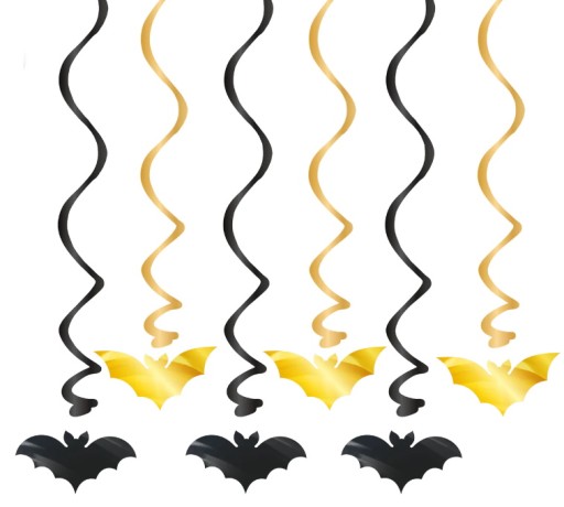 Świderki Nietoperze w kolorze czarnym i złotym, 6 sztuk