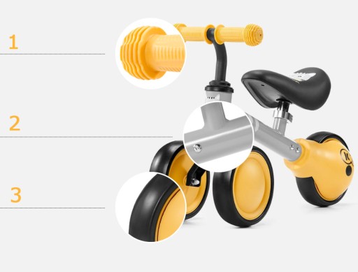 Wysokość siodełka można regulować kluczem imbusowym (zakres: 26-28 cm). Dzięki temu jeździk rośnie wraz z maluchem.