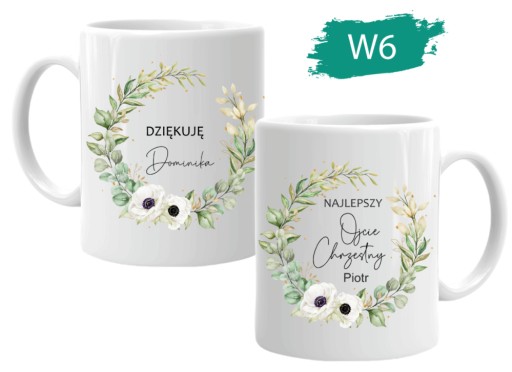 Kubek stanowi miły i praktyczny prezent jako podziękowanie dla Chrzestnych. Do wybory 6 różnych wzory (3 dla chrzestnej i 3 dla chrzestnego). Każdy kubek zapakowany jest w biały kartonik, dzięki czemu jest już gotowy do wręczenia na prezent :-)