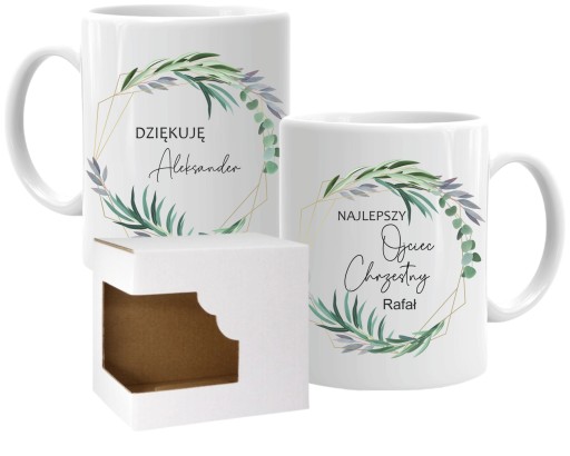 Kubek stanowi miły i praktyczny prezent jako podziękowanie dla Chrzestnych. Do wybory 6 różnych wzory (3 dla chrzestnej i 3 dla chrzestnego). Każdy kubek zapakowany jest w biały kartonik, dzięki czemu jest już gotowy do wręczenia na prezent :-)