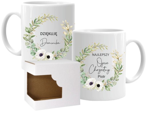 Kubek stanowi miły i praktyczny prezent jako podziękowanie dla Chrzestnych. Do wybory 6 różnych wzory (3 dla chrzestnej i 3 dla chrzestnego). Każdy kubek zapakowany jest w biały kartonik, dzięki czemu jest już gotowy do wręczenia na prezent :-)