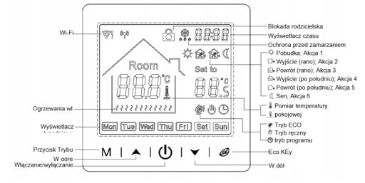 - Możliwość indywidualnego dopasowania do osobistych przyzwyczajeń - można ustawić z dokładnością co do minuty zakres temperatury w pomieszczeniu