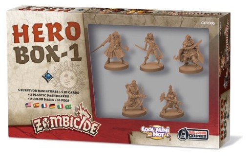 Hero-box 1 zawiera pięciu nowych bohaterów do gry Zombicide, a także dwie nowe plastikowe podstawki, nowe znaczniki i karty. Dzięki temu dodatkowi nie tylko będziesz w stanie wybrać swoich bohaterów spośród większej grupy, ale także będziesz w stanie zagrać z dwoma Ocalałymi więcej, na przykład w 8 osób naraz! Bohaterowie, którzy dołączą do twojej walki o przetrwanie to: Glynda Battlestout, Julian, Sylvia Samedi, Tucker oraz ArnaudPo doświadczeniach zdobytych w Zombicide: Czarna Plaga, wasza paczka stanie się najlepszą drużyną do eksterminacji Zombie!