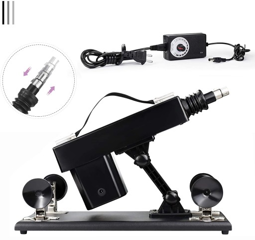 Zestaw zawiera: Sex maszyna z uchwytem i przyssawkami, zasilacz z pilotem regulującym intensywność, 3 x dildo