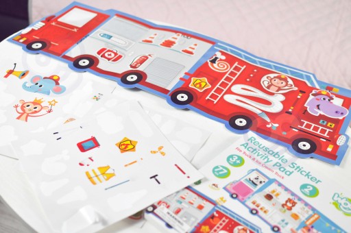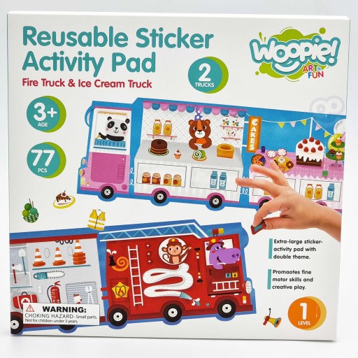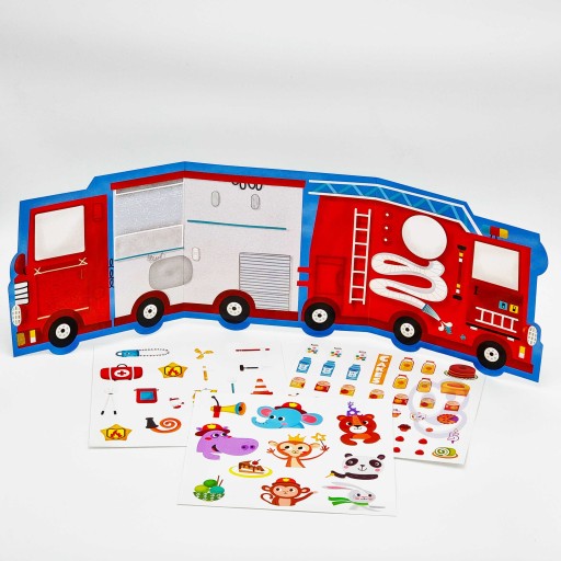 WOOPIE ART&FUN Naklejki Wielorazowe Zestaw Kreatywny Wyklejanka Pojazdy Straż Pożarna Lodziarnia 77 el.
