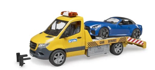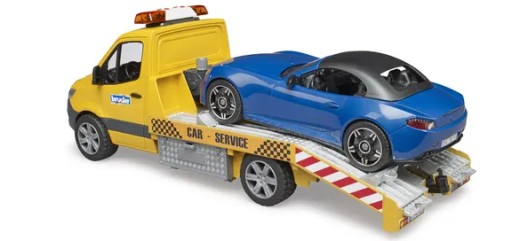 U02675 Samochód laweta MB Sprinter z modułem świetlno-dźwiękowym i BRUDER Roadster