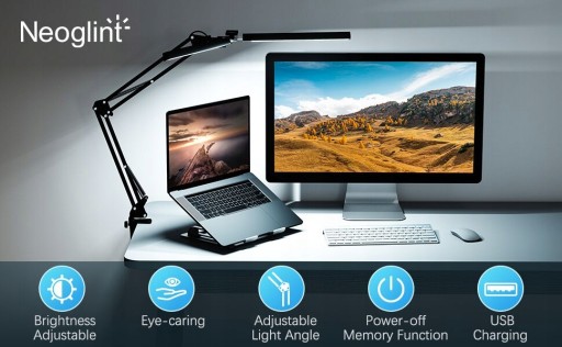Lampa biurkowa została profesjonalnie zaprojektowana, bez stroboskopu, zjawy, bez cienia, co zapewnia skupienie i produktywność podczas pracy, czytania lub nauki.