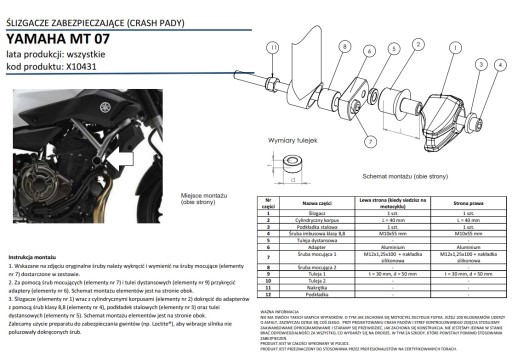 Zestawy są gotowe do zamocowania na motocyklu bez potrzeby dorabiania dodatkowych mocowań i śrub. Zestawy dobierane są indywidualnie do danego modelu motocykla. Dostosowywana jest długość ślizgacza, kształt mocowania