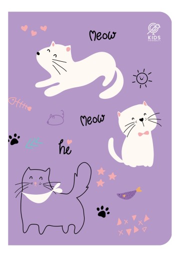 - Zeszyty z linii Kids Friendly to wysokiej jakości biały papier, przyciągające wzrok grafiki słodkich kotków na okładkach, spokojne i miłe dla oka wnętrze zeszytu i eleganckie wykończenie.
