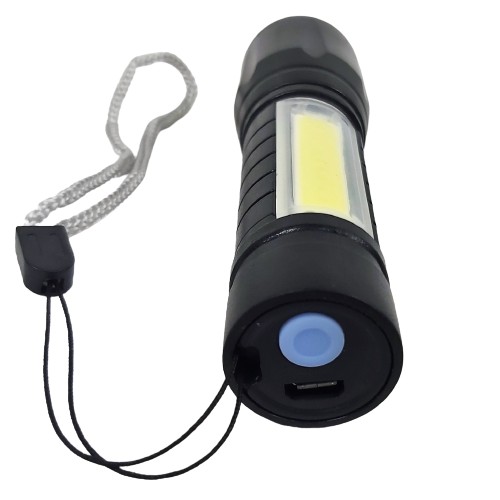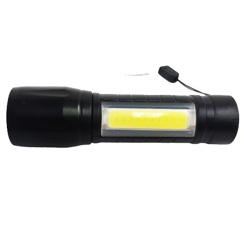 Mała, lekka i wytrzymała latarka z regulowaną soczewką i światłem bocznym z diodą led cob.