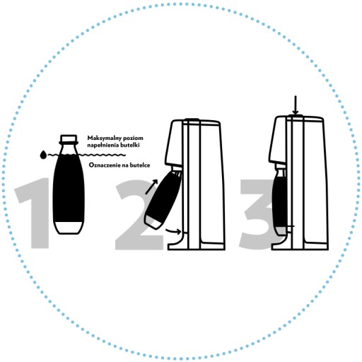 - Naciśnij przycisk – jeśli chcesz wodę bardziej gazowaną naciśnij ponownie.