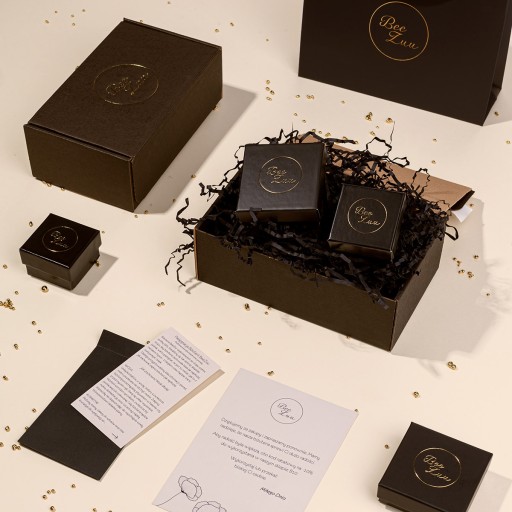 Nasza biżuteria jest wyjątkowa, podobnie jak jej opakowanie. Każdy produkt otrzymasz w eleganckim, czarnym pudełeczku jubilerskim z logo firmy, które umieszczamy w większym, czarnym pudełku kartonowym z ładnym wypełnieniem. Całość wygląda bardzo stylowo, idealnie nadając się na prezent.