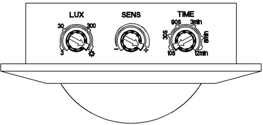 Posiada regulację SENS, LUX oraz regulację TIME - czas działania, od 10 s. do 12 min. Czas liczony jest od ostatniej detekcji. Czas opóźnienia czujnika jest naliczany w sposób ciągły- jeśli kolejny sygnał indukcyjny nakłada się na poprzedni, następuje ponowne uruchomienie.
