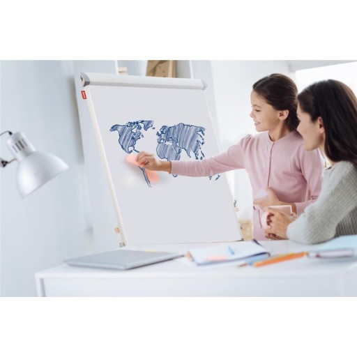 Flipchart przeznaczony do pisania markerami oraz zawieszania kartek za pomocą magnesów. Produkt skierowany jest zarówno do biur, gdzie doskonale sprawdza się podczas spotkań, konferencji czy szkoleń i stanowi znakomite wsparcie dla liderów spotkań biznesowych, jak i rekomendowany jest do szkół, gdzie pełni rolę nowoczesnego środka dydaktycznego, dzięki któremu w jasny i czytelny sposób prezentowane są komunikaty wizualne podczas lekcji i wykładów.