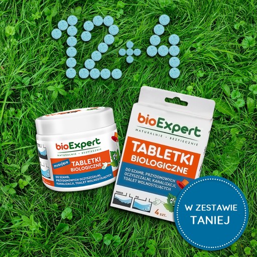 Musujące tabletki biologiczne bioExpert - najwydajniejszy produkt do szamb i oczyszczalni w Polsce - wystarczy 1 tabletka miesięcznie