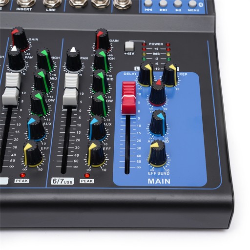 7-канальный живой звук USB Bluetooth-микшер Аудио DJ Музыкальное шоу