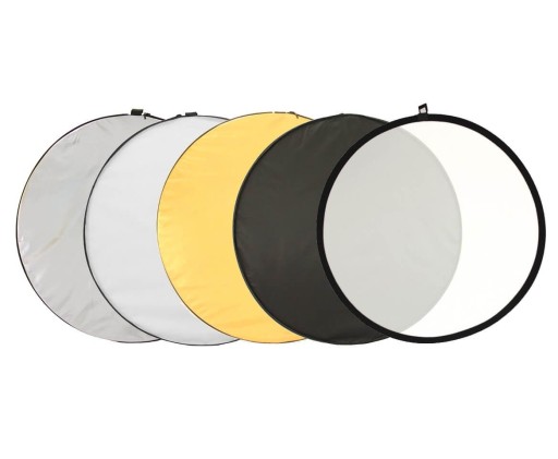 Okrągła blenda fotograficzna 5w1 MITOYA o średnicy 60 cm. Złożona z pięciu różnych powierzchni: wewnętrznego dyfuzora pełniącego funkcję stelaża, trzech powierzchni odbijających - złotej, białej i srebrnej - oraz powierzchni czarnej, służącej stłumieniu odblasków. Znajdzie zastosowanie w wielu różnych sytuacjach na planie fotograficznym oraz filmowym – w studiu czy plenerze.