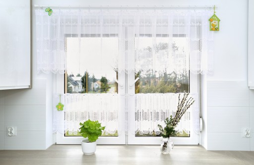 Zazdrostkę montujemy na oknie (bez wiercenia) za pomocą specjalnych, przyklejanych uchwytów.