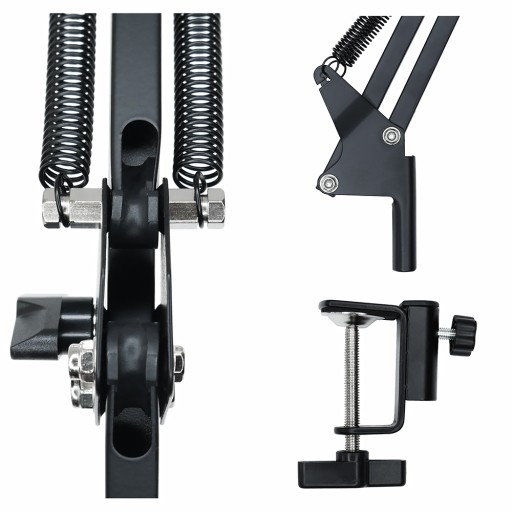 Imadło montażowe pozwoli umieścić ramię na blacie stołu o grubości nie większej niż 5 cm. Całkowita długość ramienia wynosi 70 cm. Wytrzymałe sprężyny oraz wygodna blokada pozwolą w kilku prostych ruchach dopasować położenie mikrofonu do wzrostu czy pozycji użytkownika, a także umożliwią taką aranżację kadru, w której mikrofon będzie znajdował się poza zasięgiem aparatu czy kamery. Położenie samego mikrofonu również może być regulowane poprzez zmianę kąta nachylenia trzpienia. Zmiana położenia jest możliwa także podczas korzystania z uchwytu estradowego.
