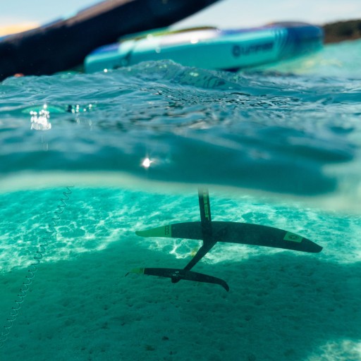 Hydroskrzydło oparte jest na maszcie o długości 75 cm wykonanym z aluminium, który zapewnia dobrą kontrolę i zmniejsza gwałtowność upadków.