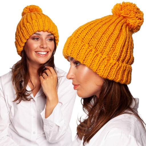 ШАПКА ЖЕНСКАЯ, ТЕПЛАЯ, КОМФОРТНАЯ, УНИВЕРСАЛЬНАЯ ЗИМНЯЯ, ЖЕЛТАЯ.
