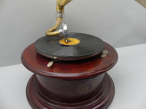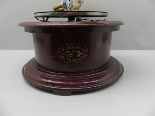 Okrągły PATEFON Gramofon! Drewniany ZŁOTA TUBA!