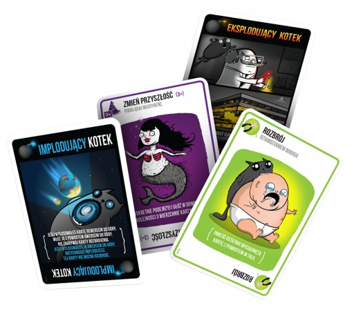 Wejdź do gry i spróbuj swoich sił w tej wysoce strategicznej, w pełni bezpiecznej wersji rosyjskiej ruletki! Podczas rozgrywek gracze co turę dobierają po jednej karcie, aż do momentu, gdy któryś trafi na puchatą bombę. Ów nieszczęśnik rozlatuje się na tysiąc kawałeczków i wypada z gry. Pozostałe karty służą do unikania eksplodujących kotków lub łagodzenia ich wybuchowego temperamentu.