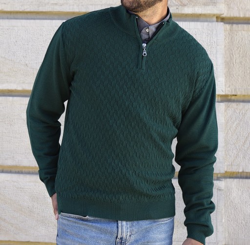 Sweter męski z wykładanym kołnierzem, rozpinany do połowy na zamek błyskawiczny - ZIELONY.