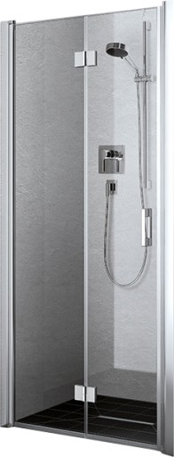 Drzwi wahadłowo - składane można w razie potrzeby złożyć płasko na ścianie. Gwarantują dużą szerokość wejścia, bezproblemowe czyszczenie i praktyczną oszczędność miejsca w łazience.