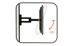 Regulacja w pionie -15 stopni pozwoli dopasować kąt widzenia do wysokości oczu oglądających.