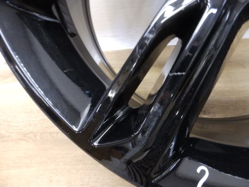 Felga ma zadrapanie lakieru, co widać na zdjęciach.